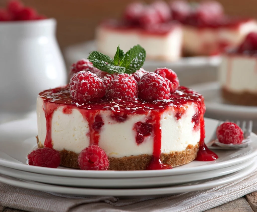 Serve chilled slices with extra raspberry sauce on the side. Add a dollop of whipped cream for a classic dessert style presentation. Pair with tea, coffee, or sparkling water for a refreshing contrast. It is ideal for birthdays, holidays, or weekend treats. For a fancier look, drizzle melted chocolate over the raspberry topping. It tastes even better the next day as the flavors settle.